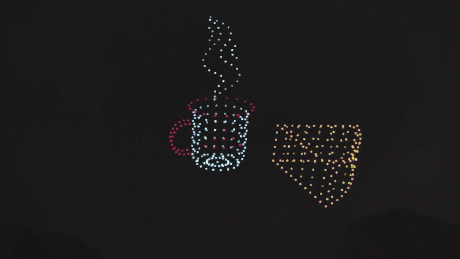 Drones form ‘an ocean of raised hands’, clapping or waving, creating a collective visual that mirrors the viewers themselves and sparks the sense of unity.