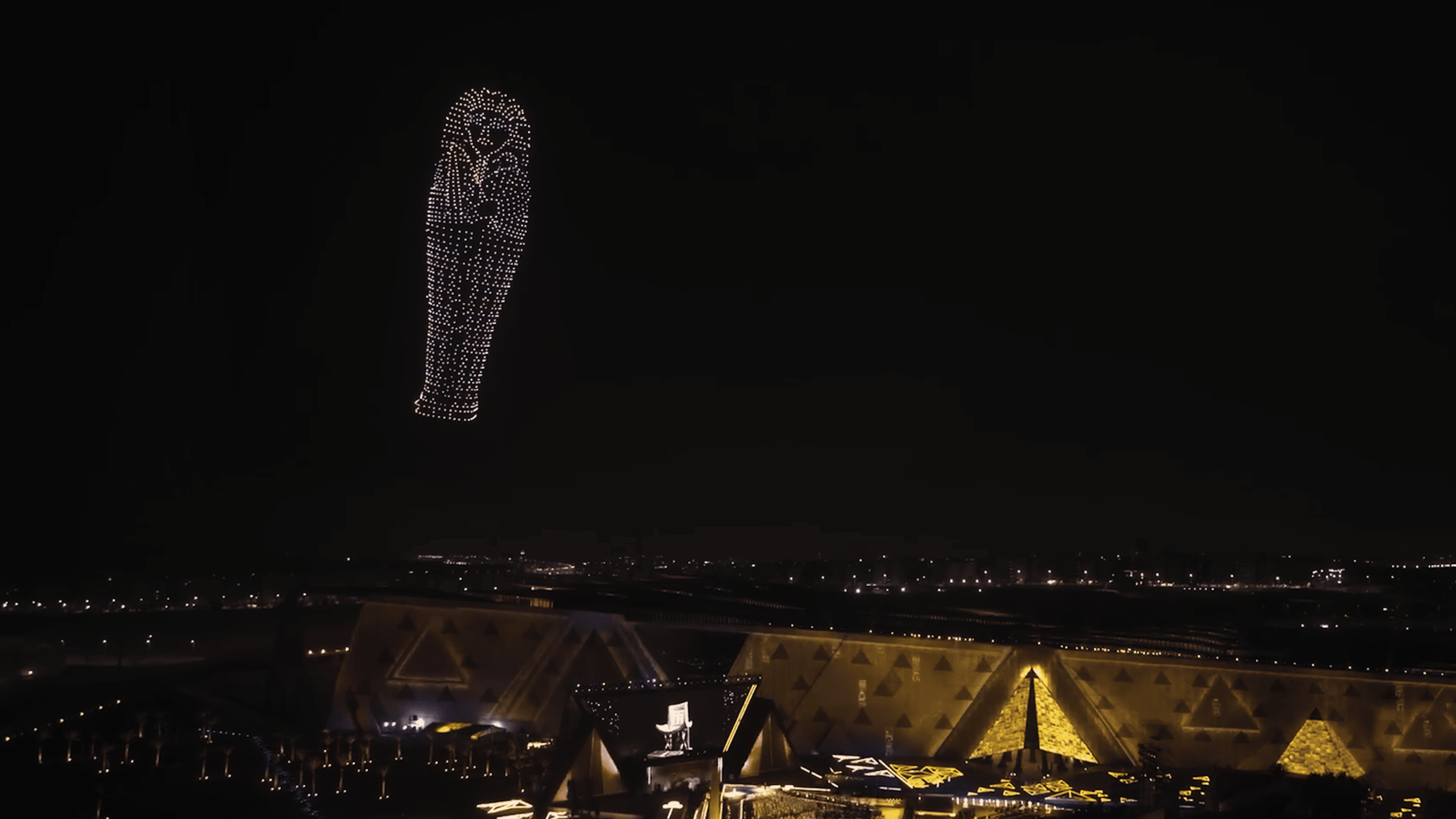 Among other event elements, a 5,000 drone display helped history come alive above the pyramids.